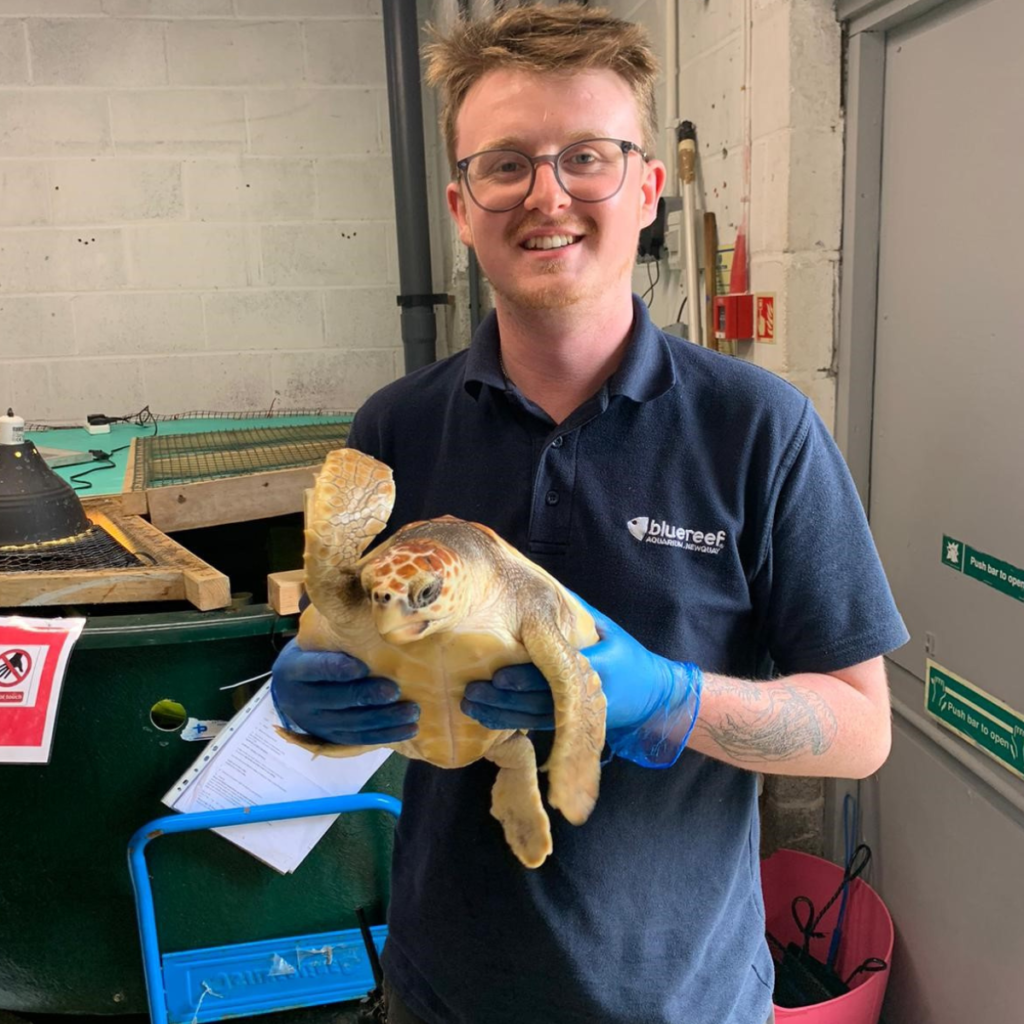 Owen: I started this career path through volunteering at the National Marine Aquarium in Plymouth whilst at Uni and fell in love with the job. I have been at Blue Reef since November, 2022. After finishing my degree and looking for a job this one came along at the perfect time.