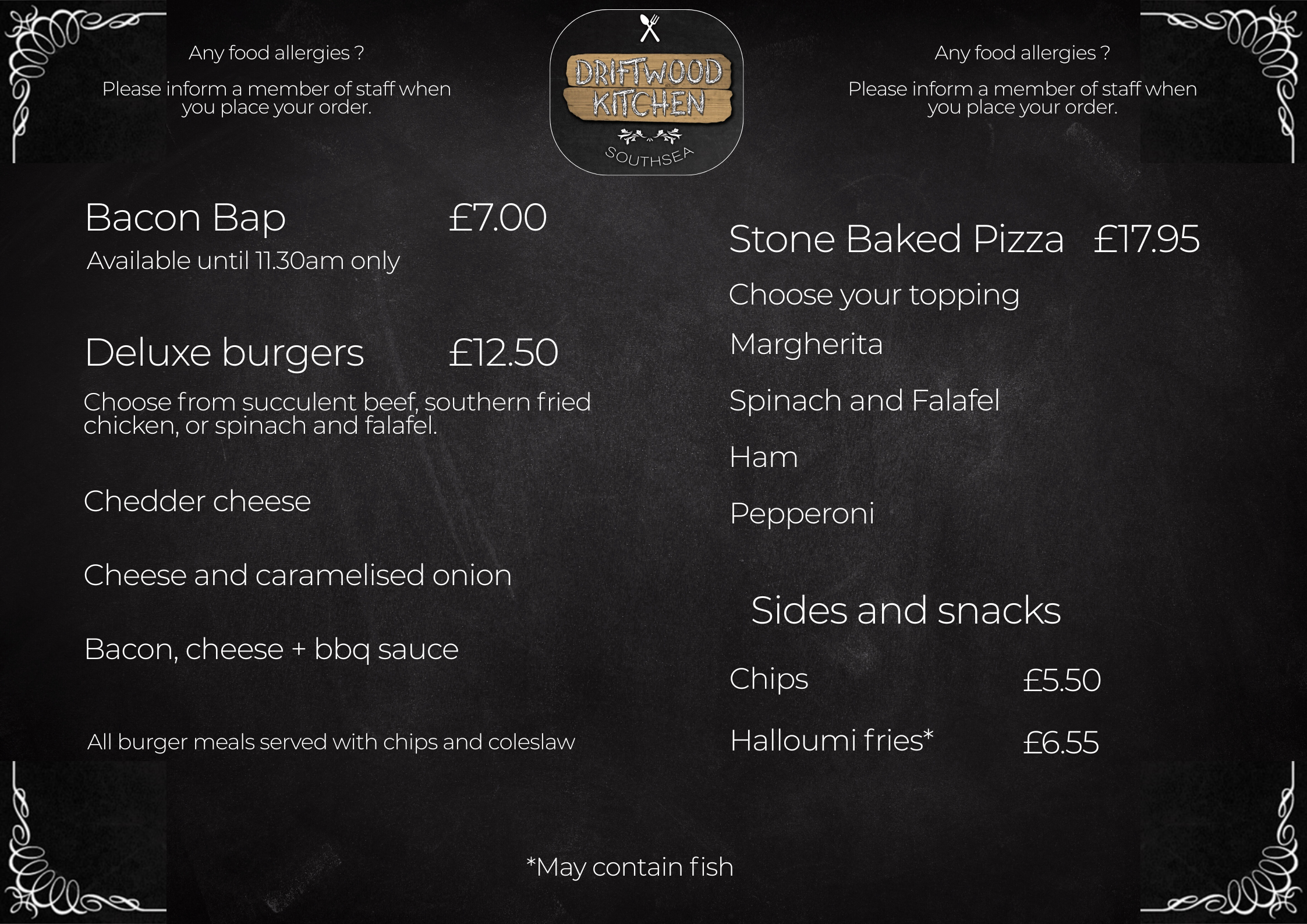 Dive into a freshly made baguette, stacked burger, or stone baked pizza whilst you enjoy the views across Southsea common and beyond.